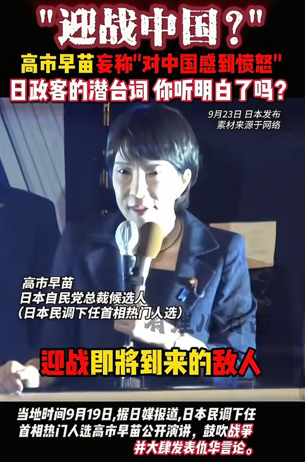 高市早苗在选举时选择的路线就是“仇华”,她在演讲中公然叫嚣: