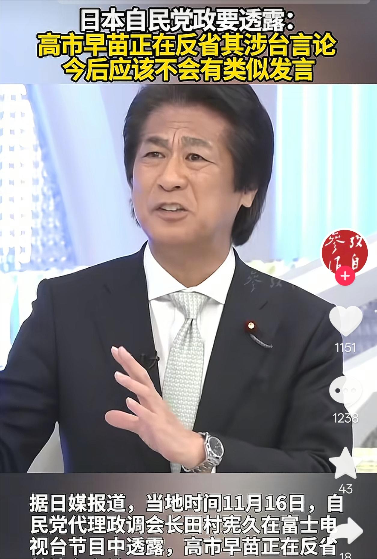 即便日本自民党坦言:“高市早苗正在反省其涉台言论,今后应该不会有类似发言。”