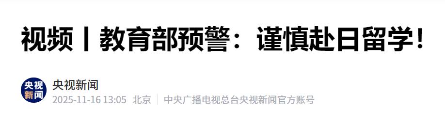 11月16日13:05,教育部发布预警:中国公民谨慎规划赴日留学安排。