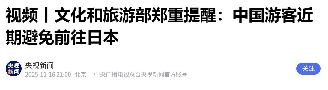 11月16日晚9点,文旅部郑重提醒:中国游客近期避免前往日本,并且去往日本的机票免费改退票。