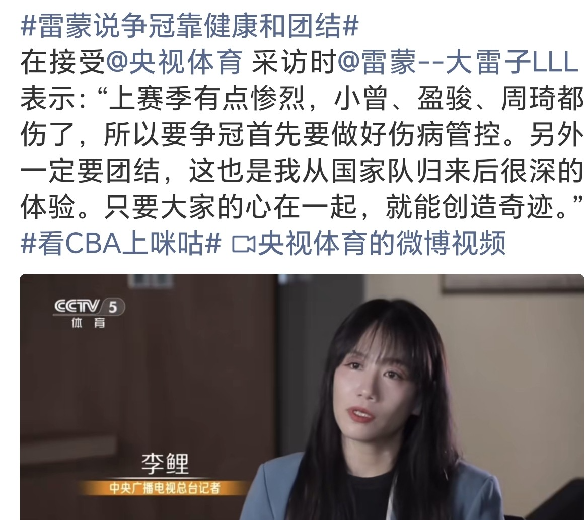 从首钢球员雷蒙接受央视体育采访的内容来看,雷蒙主要谈了两点,第一点就健康问题,第二点就是团结问题,雷蒙认为,这两点是争冠的基本条件。