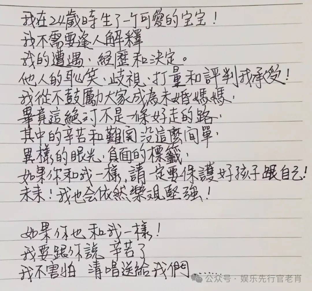 就在这时,谢金燕被曝出未婚生子,直接引爆了台湾娱乐圈。媒体铺天盖地都是关于她的报道。但谢金燕始终守口如瓶,不肯透露孩子父亲的身份。她独自一人抚养孩子长大,而且她也让大家不要学她。