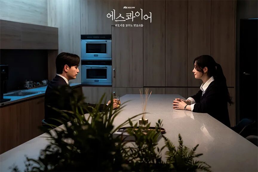 另一方面,尹锡勋在“驯化”姜孝敏的情感。他并非扼杀她的正义感,而是教她为这份初心锻造“容器”与“武器”。画作抄袭案中,他让姜孝敏独立承担辩护工作,却在背后默默安排模拟辩论,点出“看清案件本质”的核心关键;他更是直指核心,提醒姜孝敏需关注委托人的“内心创伤”而非仅局限于身体伤疤。姜孝敏的成长,正是将澎湃的共情,淬炼成更具穿透力与说服力的专业表达。