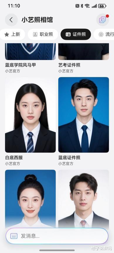 大家正发愁讨论时,隔壁部门的同事说,“华为手机有鸿蒙5系统的,有办法搞定证件照”。作为团队里的“技术达人”,华为的新功能总被他第一个发掘。他告诉我们,鸿蒙5的小艺智能体市场里面,提供了很多实用智能体。在小艺App右下角点“发现”,进入智能体市场,搜“小艺照相馆”,就能作证件照。