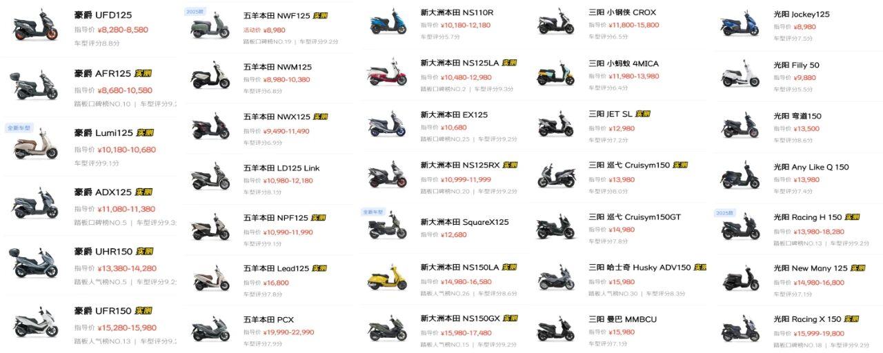 首先,升仕150X的价格就定得很有意思,因为上一周陶老板还在说研发成本高要亏本,这周直接公布11,800元的售价确实够狠。这个定价刚好卡在主流国内大牌125踏板(普遍1~1.3万)和大部分150水冷踏板(普遍1.3~1.5万)之间的敏感地带。这个定价,第一拳就是冲着那些动力平庸、配置传统的150踏板而去;第二拳则是冲着大牌125踏板。对于那些准备买高配125的车友,稍微添点预算就能跨到动力强一截的150,这个诱惑是实实在在的。