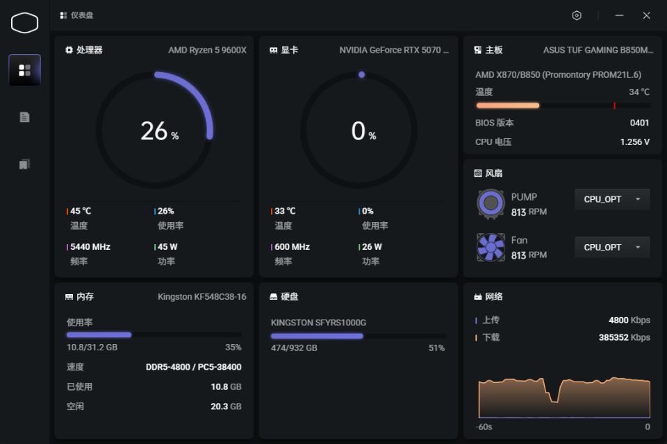 顺便夸一下MasterCenter这款软件,除了可以自定义水冷头外,还可以查看机器的运行参数,界面干净简洁,单独作为一款软件也非常好看和好用。