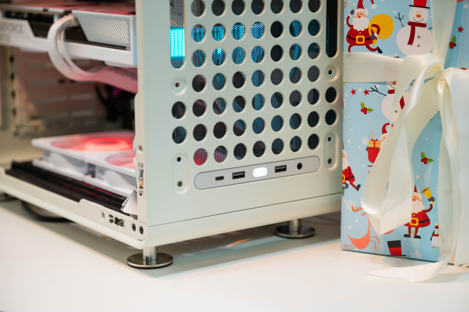 这也带来了一个巨大优势:摆放方式极度自由。更有趣的是,机箱IO面板也可以随意移动,完美适配各种摆放方向和角度。
