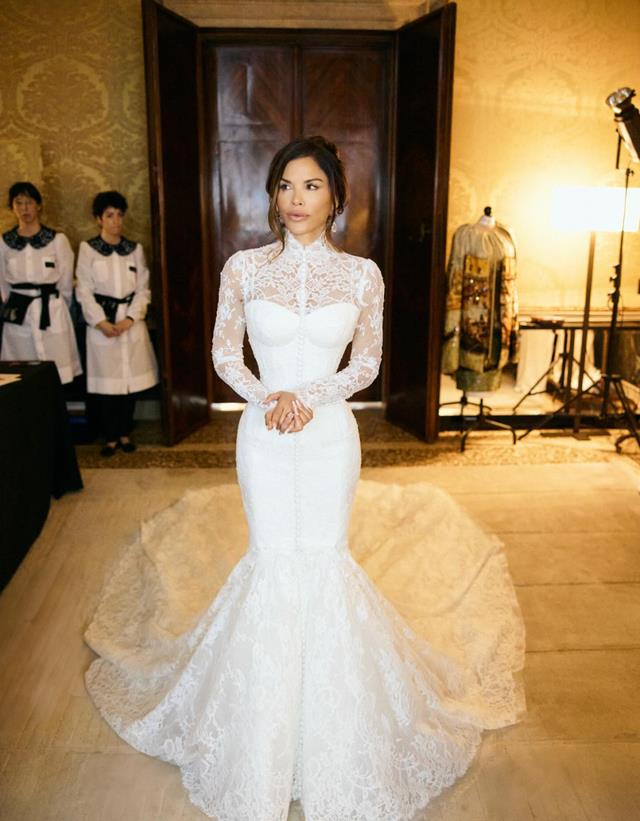 现年55岁的桑切斯也是忙不迭地向粉丝们展示了自己的高级定制婚纱,据称是意大利设计师为她量身定做的。