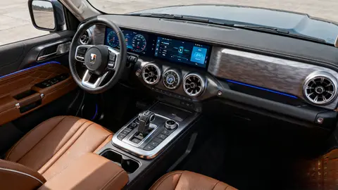 智能升级才是这次的"王炸"。车顶新增的128线激光雷达格外抢眼,配合4颗毫米波雷达、1颗远红外雷达,直接升级成第三代Coffee Pilot Ultra辅助驾驶系统。高速上能自动跟车变道,遇到突发情况秒级刹车;就连越野场景都有辅助——系统能自动识别坑洼路面,调节动力输出避免陷车,对新手太友好了。车内还标配流媒体后视镜,夜间行车视野更清晰,尾灯里的小蓝灯更是拉满科技感。