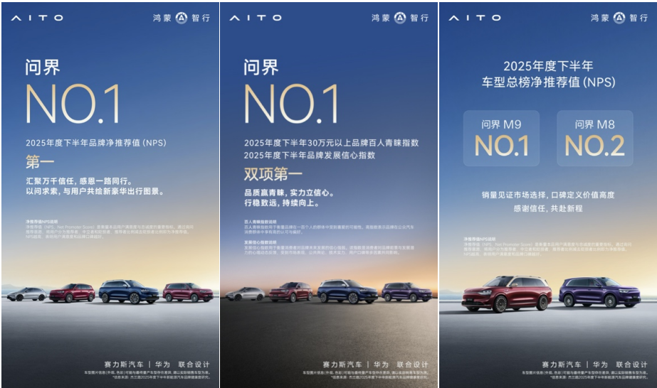 近日,杰兰路发布《2025年度下半年新能源汽车品牌健康度研究》报告。报告显示,问界荣获品牌NPS(净推荐值)第一、品牌发