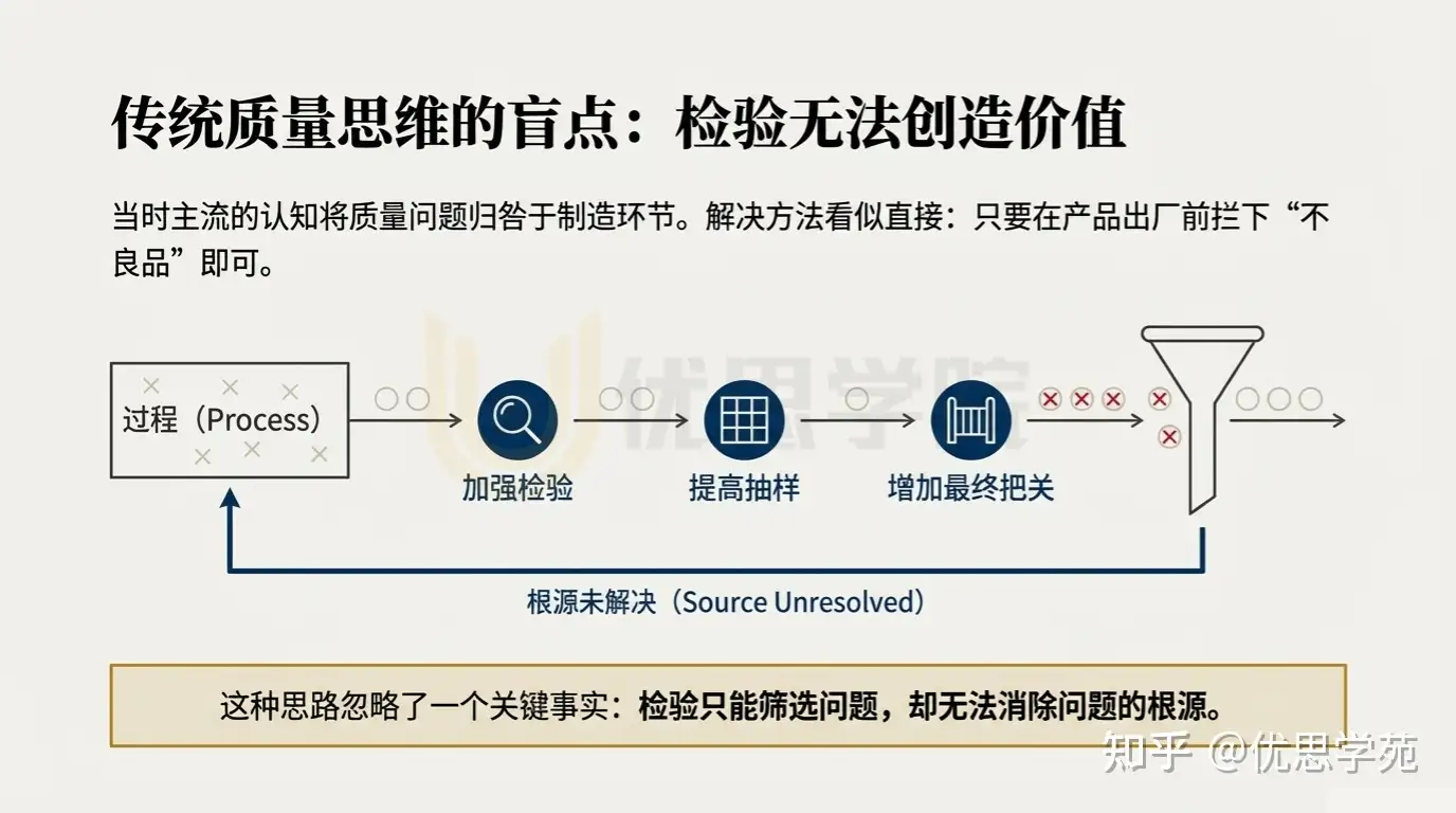 在当时的主流认知中,质量问题通常被视为制造端的问题。解决方式也相对直接:加强检验、提高抽样比例、增加最终把关。只要“不良品”能在出厂前被拦下来,问题似乎就解决了。