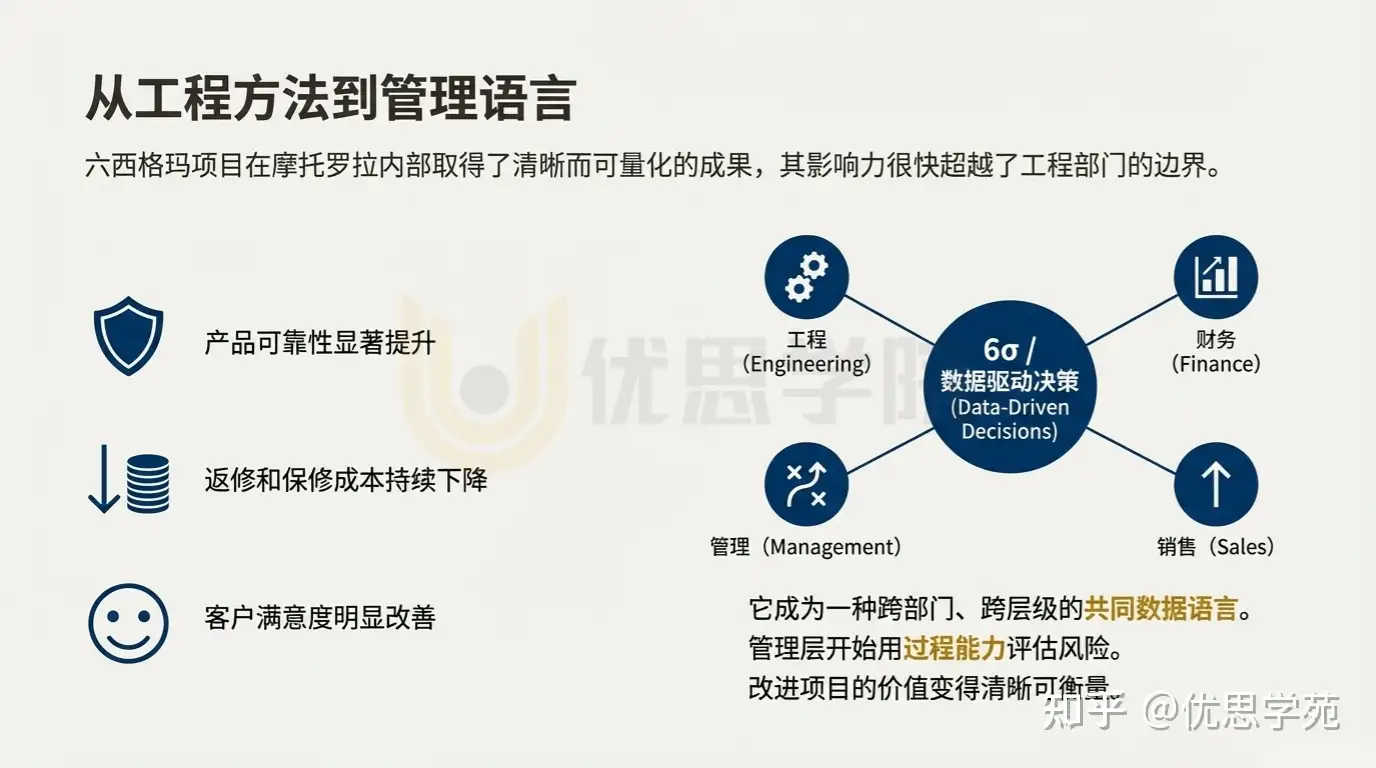 从这个角度看,六西格玛并不是一项只属于质量部门的技术,而是一种适用于管理者、工程师和改善团队的共同语言。也正因为如此,它才能从摩托罗拉走向世界,并在今天依然具有现实意义。