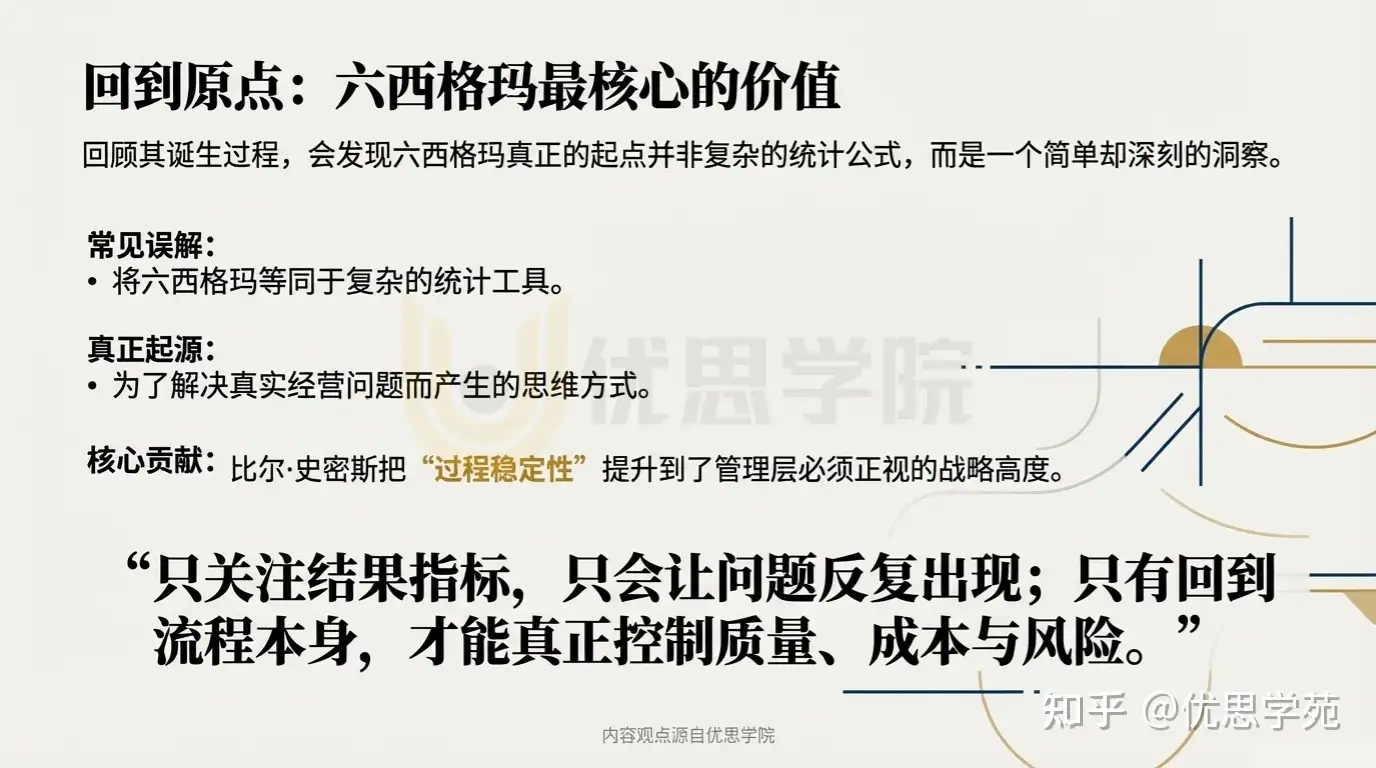 优思学院认为,这正是六西格玛最容易被误解、却也最有价值的地方。很多人把六西格玛等同于复杂的统计工具,却忽略了它最初是为了解决企业真实经营问题而产生的思维方式。