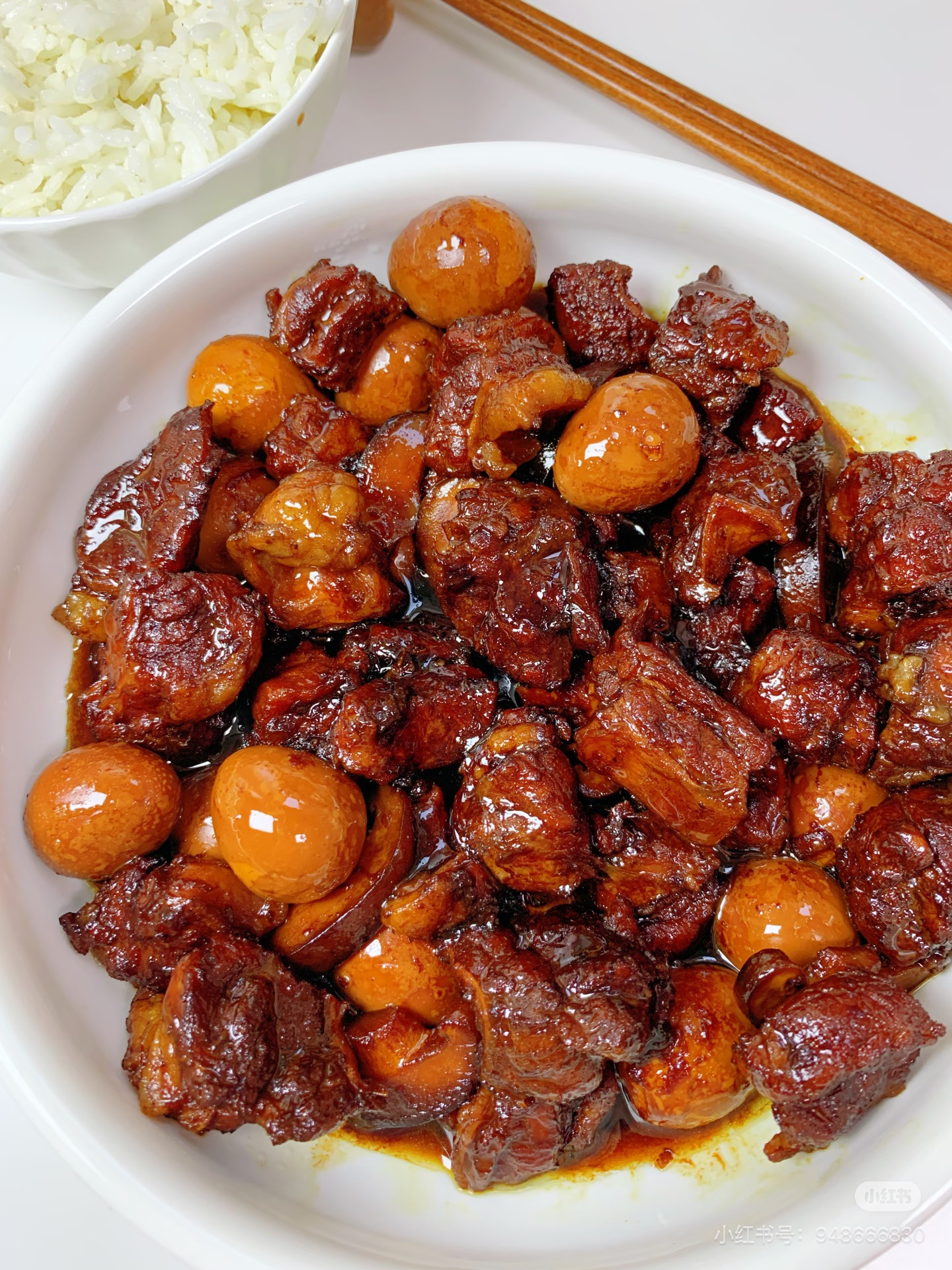 卤肉搞定,米饭早就在电饭煲里等得嗷嗷叫。盛一碗热乎米饭,把卤肉连汁带肉狠狠浇上去,再来两颗提前剥好的鹌鹑蛋,表面划两刀,让卤汁钻进蛋黄,最后撒把葱花,绿油油的一撮是“点睛之笔”。第一勺入口,牛肋条的纤维里吸饱酱香,咬开瞬间肉汁炸开,洋葱的甜先打头阵,香菇的鲜紧随其后,冰糖的尾调把咸拉回甘,层次感比某些偶像剧还丰富。鹌鹑蛋也不甘示弱,蛋黄沙糯,带着淡淡卤香,小朋友直接当“卤味糖”啃。