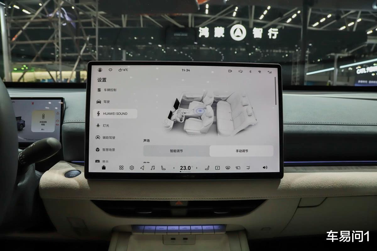 当然,座舱最关键的升级还是在于鸿蒙座舱HarmonySpace 5的搭载。其中,15.6英寸屏幕就是配套的HUAWEI山海画质车载智慧屏,并配有人脸识别摄像头与手势感应器;而车机本身则支持华为设备间的流转接力、AI语音智慧助手,还集成了无麦K歌等娱乐功能。此外,车辆还搭载了15扬或17扬声器组成的HUAWEI SOUND,配合翻毛装饰材质、主动氛围灯、双排隔音玻璃以及可开启的全景天窗,出行途中的舱内娱乐氛围也会是很高的。