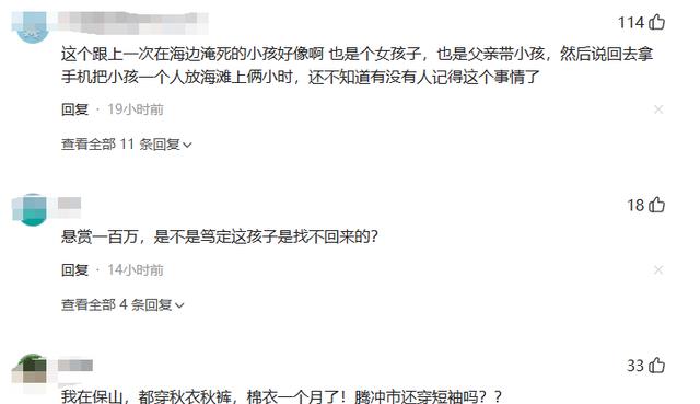 就算白天温度再高,也没有高到能穿短袖的地步,再加上100万元的巨额悬赏金,就有网友琢磨出不对劲的地方了,这些条件加起来,感觉潇潇走失的可能性不大,反而是剧本的可能性非常大,有可能潇潇短袖的照片都是摆拍的。