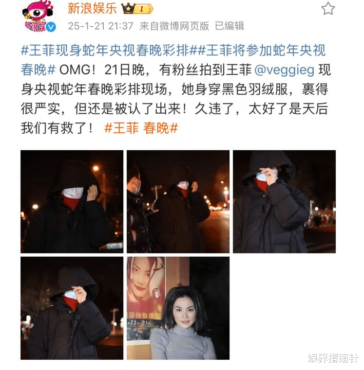 2025 年 1 月 22 日,总台春晚正式官宣,华语乐坛天后王菲将惊喜亮相蛇年春晚舞台,为全球观众深情演绎特别单曲《世