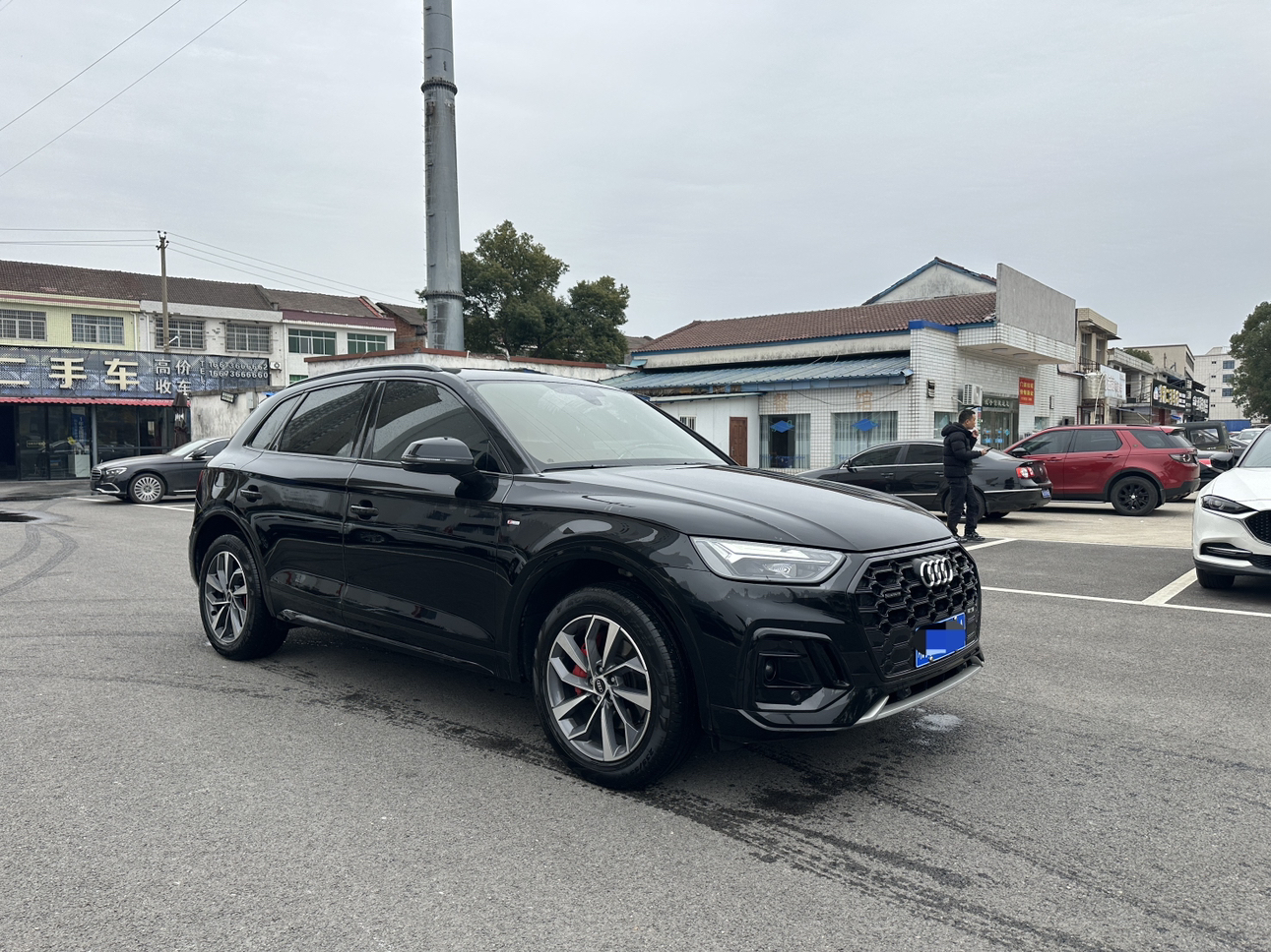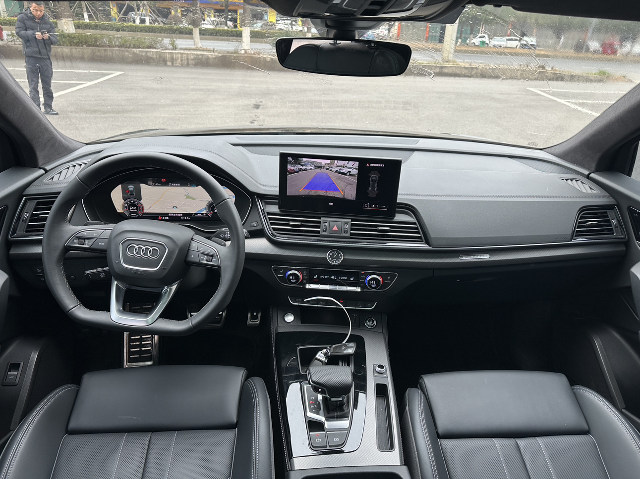 这台奥迪Q5L的外观颜色为黑色,内饰颜色为深色。车身长4770mm、宽1893mm、高1667mm,轴距2907mm,为乘客提供了宽敞的乘坐空间。座椅采用仿皮材质,不仅舒适而且质感上乘。该车配备全景天窗,不仅增加了车内的采光,还提升了乘坐的舒适度。行李舱容积达到550L,无论是家庭出行还是长途旅行,都能轻松应对。该车搭载了一台2.0T直列4缸涡轮增压发动机,最大功率140kW,最大扭矩320N·m,保证了车辆的动力性能。配合7挡湿式双离合变速箱,换挡平顺,传动效率高,使得驾驶体验更加顺畅。该车采用了适时四驱系统,能够根据路况自动调整前后轮的动力分配,提高了车辆的通过性和操控稳定性。无论是城市道路还是复杂路况,都能确保驾驶者的安全和舒适。官方数据显示,该车0-100km/h加速时间为9.1秒,实际表现优秀。得益于高效的发动机和合理的车辆调校,该车的WLTC综合油耗仅为7.77L/100km,表现出色。该车配备了前后驻车雷达、倒车影像、定速巡航等多项辅助驾驶功能,为驾驶者提供了全方位的支持。无论是新手还是老司机,都能轻松驾驭这台车。车内配备了10个扬声器,音质清晰,低音强劲,为乘客提供了沉浸式的听觉享受。该车支持手机App远程控制,方便驾驶者远程操作车辆各项功能。同时,电动后尾门等配置也提升了使用的便利性。车内氛围灯、单色阅读灯等配置,为乘客营造了舒适的乘车环境。后排座椅可40:20:40比例放倒,灵活多变的空间布局满足不同需求。该车还配备了自动空调、车载空气净化器等配置,为乘客提供了更加舒适的驾乘环境。
