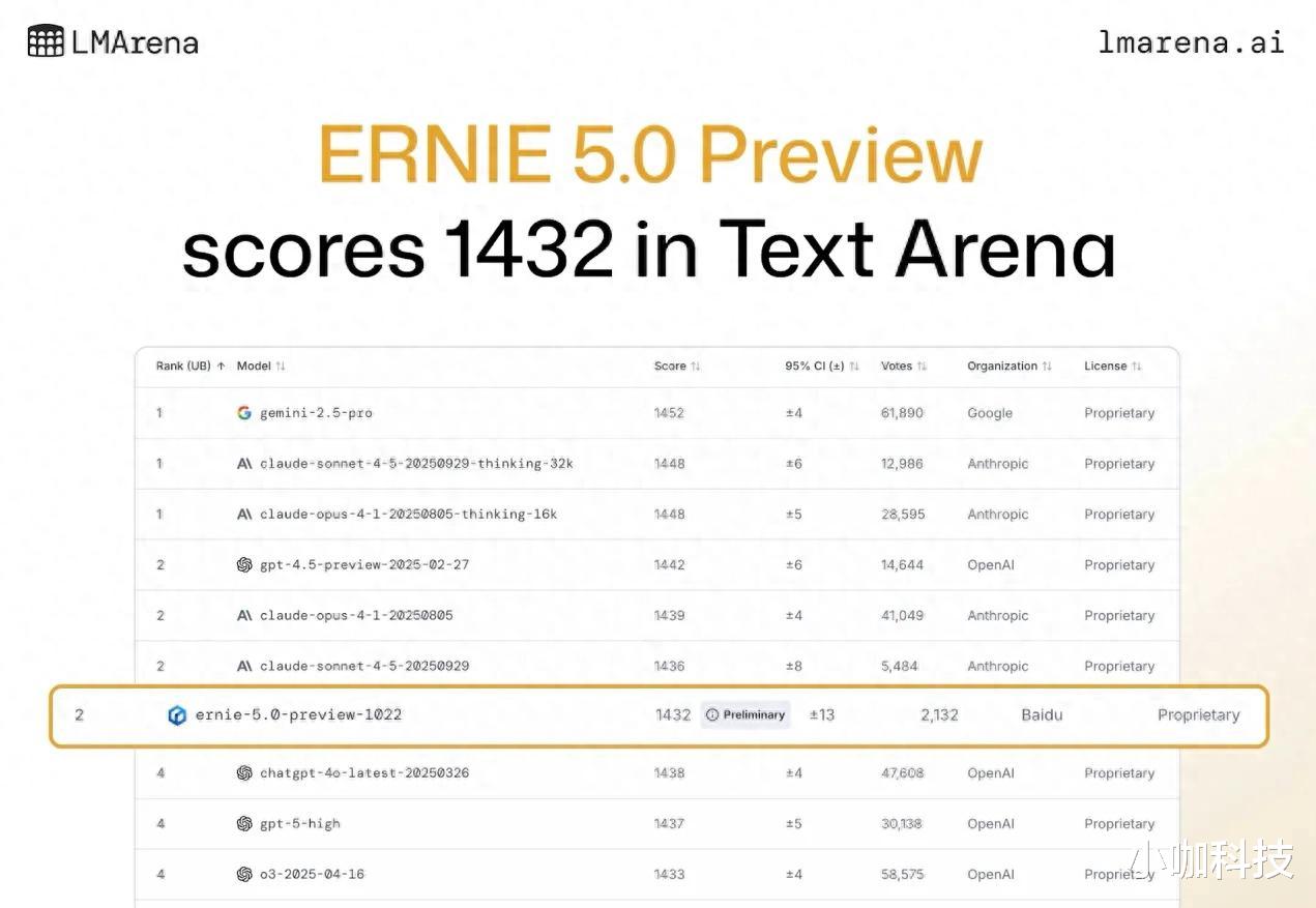 文心全新模型ERNIE-5.0-Preview-1022登上LMArena文本排行榜国内第一