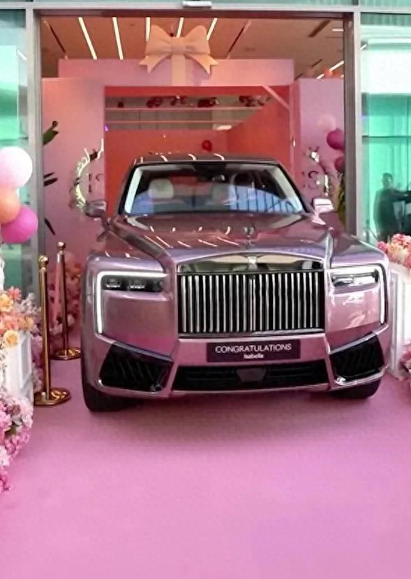 桑帕尔夫妇联合在社交媒体上分享了一段视频,展示了他们送给女儿伊莎贝拉的新礼物,一辆金属粉色的劳斯莱斯幻影轿车。