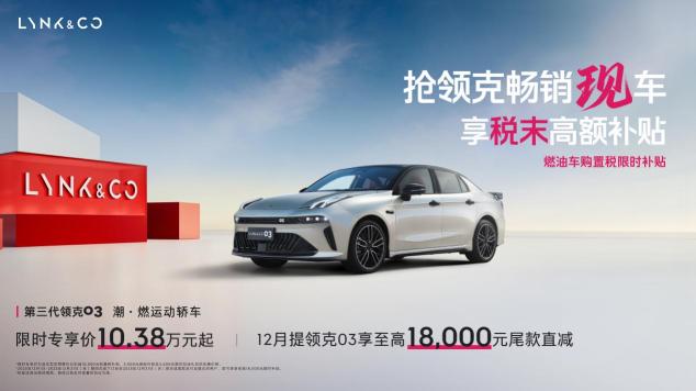 从赛道到街道,领克已经构建起一套完整的技术闭环,而12月的购车福利,更是让这份赛道级体验触手可及。目前领克03家族推出专属购车政策。更实在的是,针对燃油车用户的限时购置税补贴持续加码,彻底打消跨年购车可能面临的购置税优惠减少顾虑。对于想入手的朋友来说,现在下单不仅能以更划算的价格拿下,还能直接体验到经过赛道验证的硬核技术。