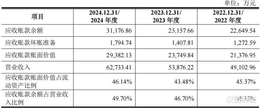 应收账款攀升,2024年应收账款余额占营收比例近5成