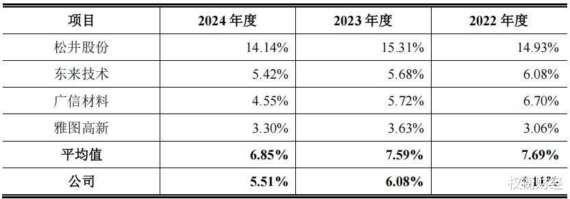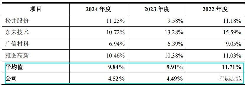 金桥德克研发费用分别为2,511.18万元、3,276.96万元和3,454.62万元,占当年营业收入比例分别为5.11%、6.08%和5.51%。公司研发费用率均低于同行业可比公司平均水平7.69%、7.59%和6.85%。