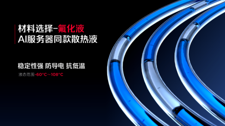 氟化液具备优异的绝缘性能,且在-60°C~108°C范围内都能保持液态,有效解决了极寒/极热环境下常规冷却液的凝固/汽化问题。