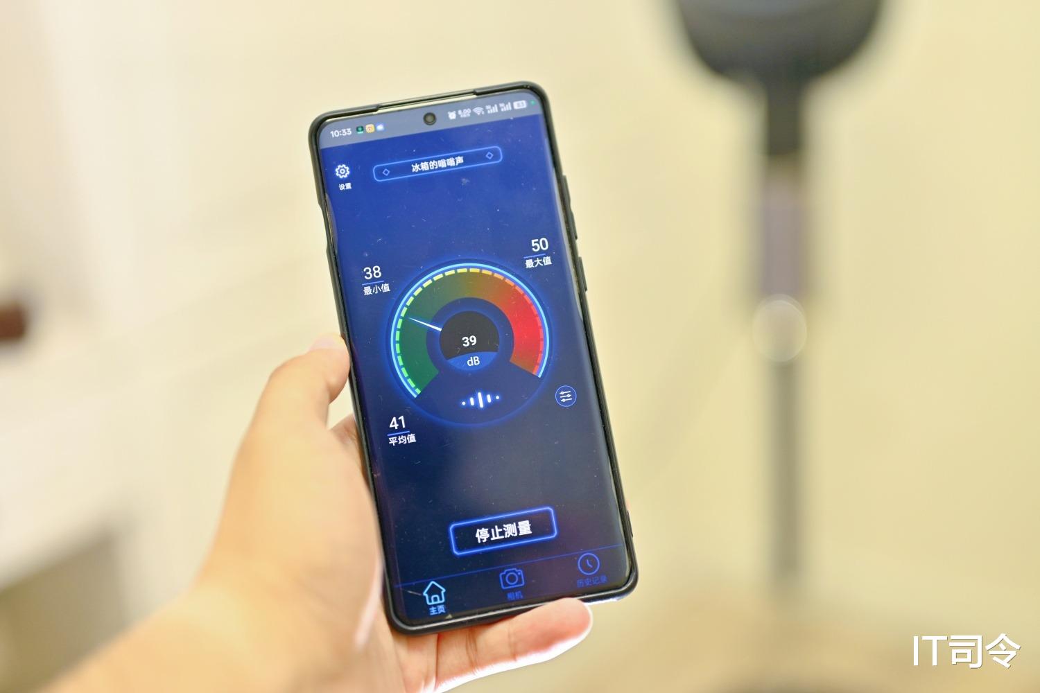 风大,但噪音不大,宫菱VEV循环扇采用NVC 4层物理降噪技术,几何声学应用降噪加上航空级严密封装工艺,让这款循环扇的平均噪音只有23dB,工作、学习、睡觉的时候都不会有太多的噪音。我开启1档,在距离循环扇1米的位置测试了一下噪音,是39dB。