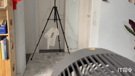 我对比了家里现有的大宇的一款循环扇,开启最大档,能明显看出宫菱VEV循环扇吹风时,衣服一直处于斜着状态,风更大一些。