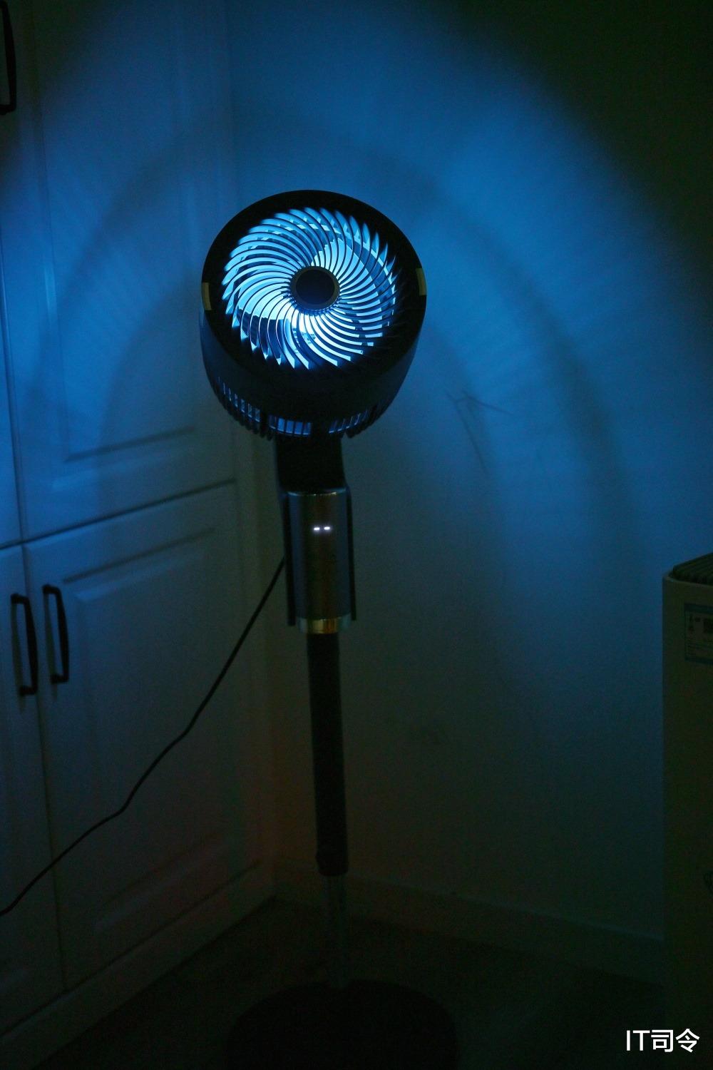 里面还有蓝色的柔光氛围灯,蓝色的光能够减弱刺激,更好的保护眼睛,晚上起夜不用摸黑了。就算不开循环扇,也可以单开氛围灯作为夜灯使用。
