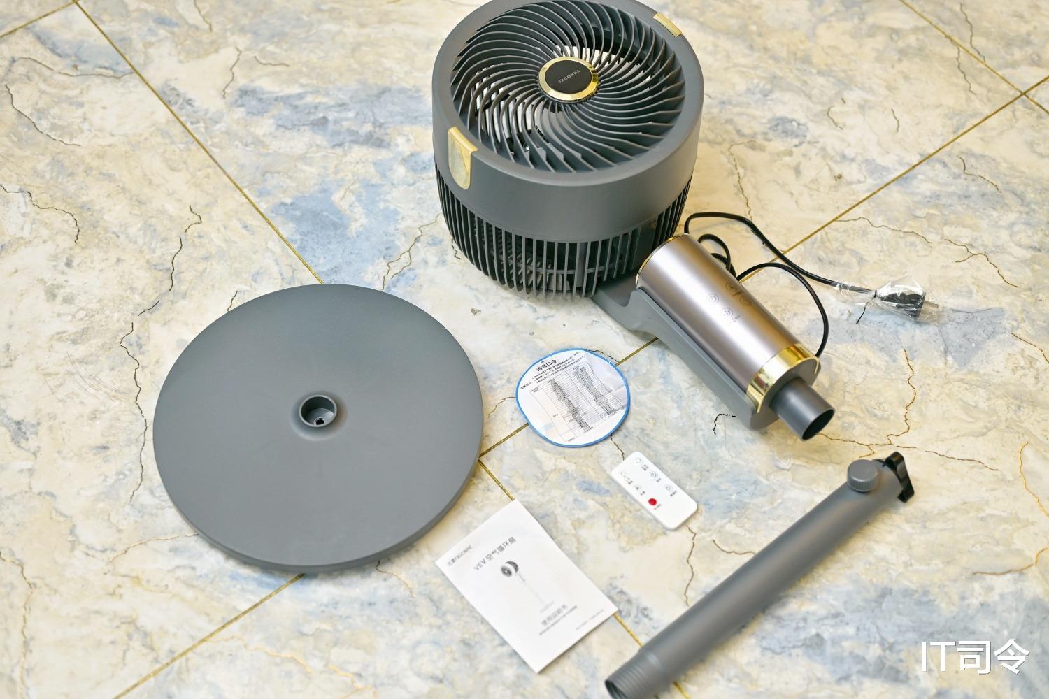 循环扇零部件被泡沫安全的固定在箱子内,循环扇、支撑杆、底座是分开放的,除此之外,还有遥控款、说明书和快速入门指南。