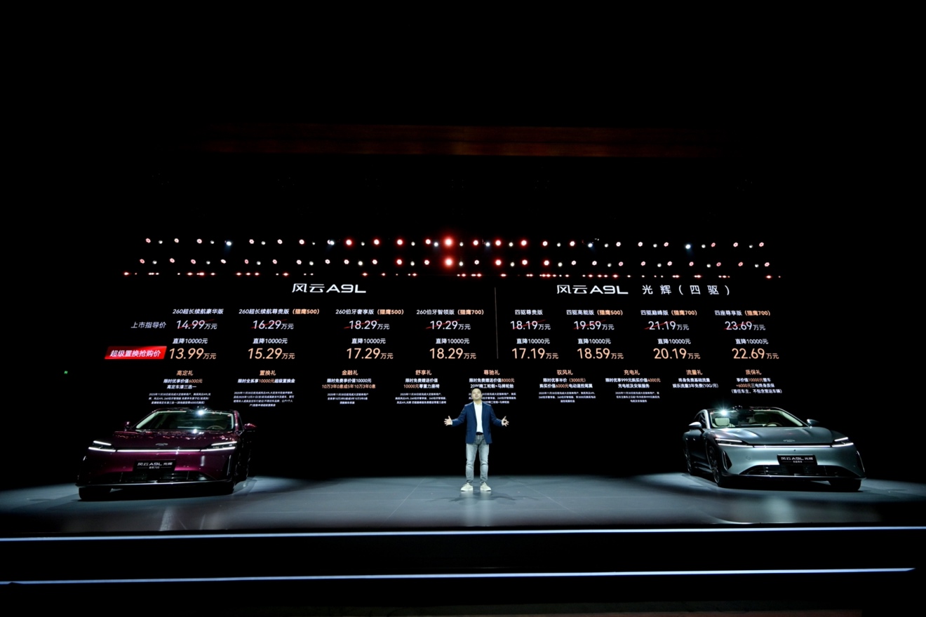 2025 年 11 月 15 日,“进化之作” 风云 A9L 光辉(四驱)全球上市发布会在重庆广阳岛国际会议中心盛大启幕。本次共推出四款版型,正式售价 17.19 万元起,具体版本及超级置换抢购价如下:四驱尊贵版 17.19 万元、四驱高能版(猎鹰 500)18.59 万元、四驱巅峰版(猎鹰 700)20.19 万元、四驱尊享版(猎鹰 700)22.69 万元。同步推出 “九大购车权益”,覆盖高定、置换、金融、舒享、尊驰、驭风、充电、流量、质保等多重礼遇,为中国豪华汽车市场树立全新标杆。