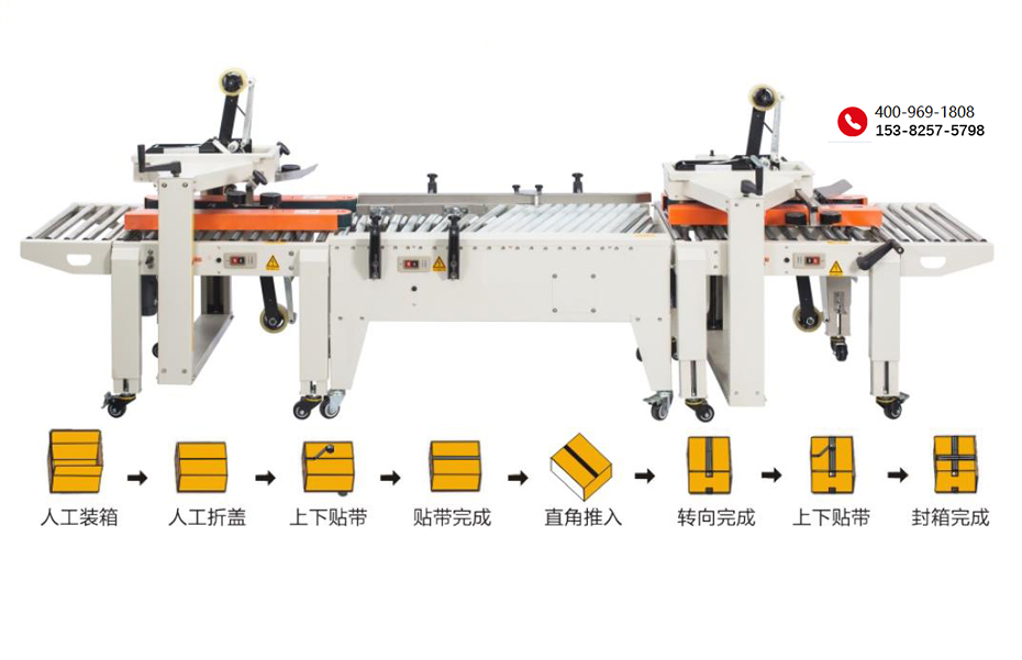 设备的核心优势在于其“全方位封箱保护”。传统的封箱方式可能无法完全应对长途运输中可能发生的箱体变形或开裂问题,而十字形封箱结构能够提供更强的支撑,特别适合较重的产品或易碎物品的包装需求。无论是食品、日化用品、医药制品,还是电子产品,都能在这款设备的封箱保护下,顺利完成包装与运输。