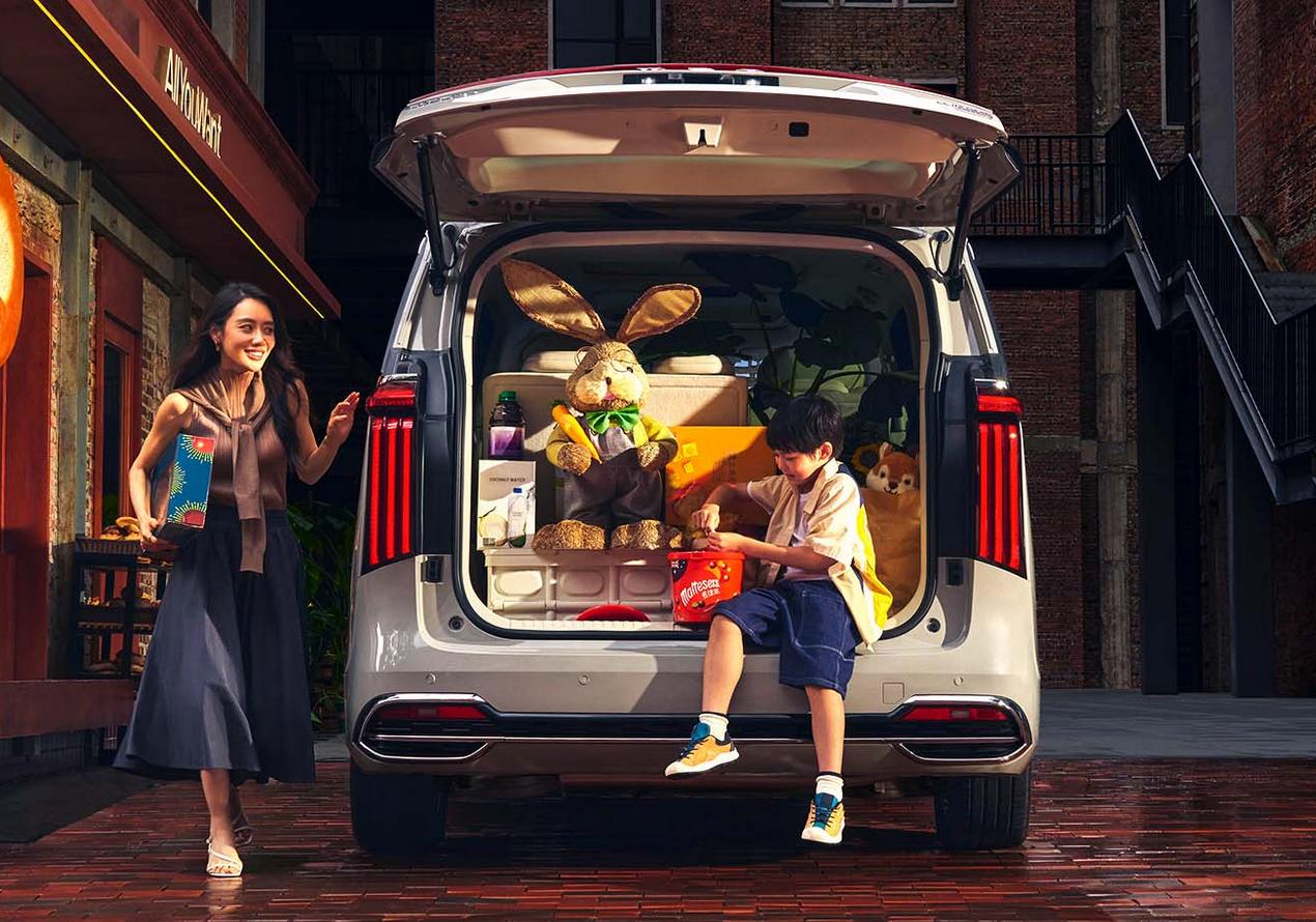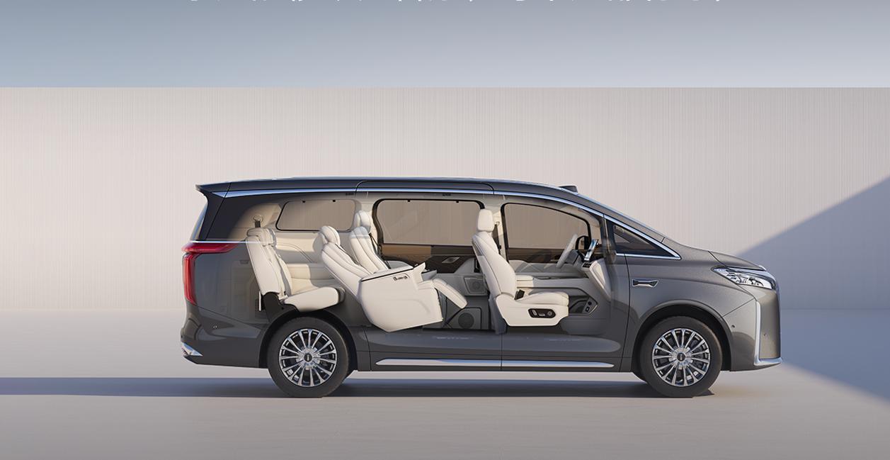 首先在车身尺寸上,该车的长宽高为5050x1960x1900mm,轴距3085mm,定位是一台中大型MPV。车内采用了2+2+3的7座布局设计,车内空间表现也较为宽敞舒适,舱内有效长度达到了3468mm,乘员舱最大尺寸为2867mm,车内的地板采用了纯平设计,支持多种的空间组合,可根据用车需求进行较为灵活调整。