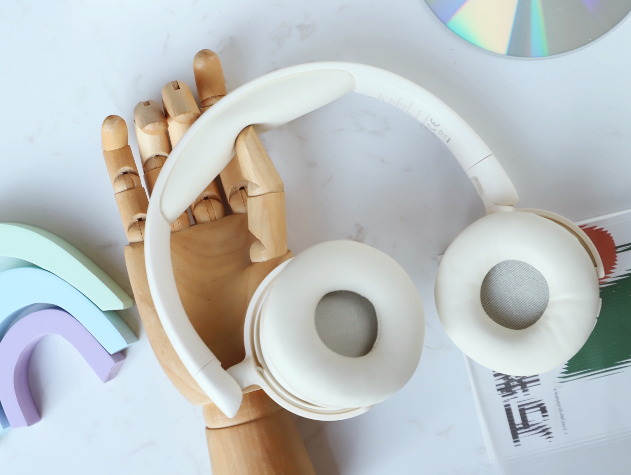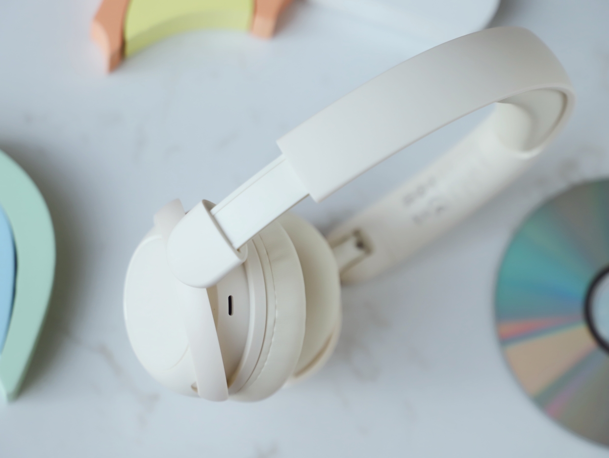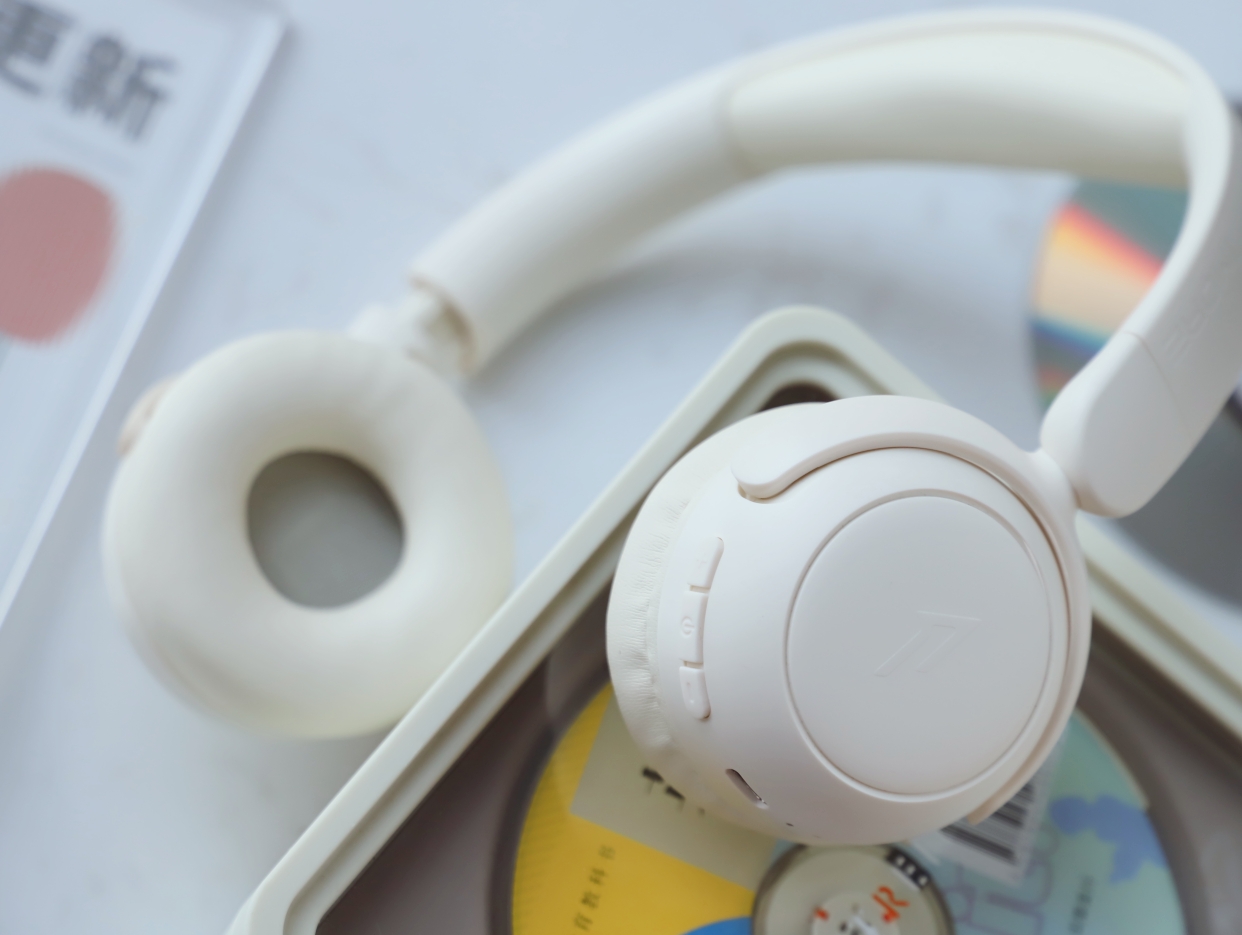 万魔HQ20耳机的外观简洁大方,星空黑、奶油白和樱花粉三种配色,我选择的是百搭的奶油白。耳机采用了人体工学设计,配备全包式耳罩,整体重量约为181克,佩戴起来轻盈而不压耳。