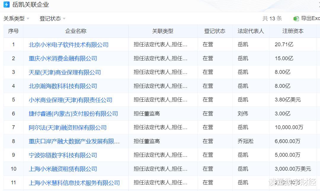 事实上,岳凯所接棒的不仅仅是小米消费金融,而是小米旗下大量金融相关业务的董事长、执行董事、董事职务。且是天星数科总裁。