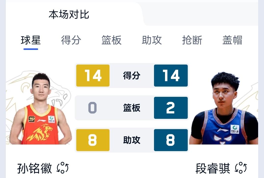 全场数据来看,孙铭徽表现非常高效,出场16分钟,得到14分,外加8次助攻,正负值+14,堪称本场最佳球员。