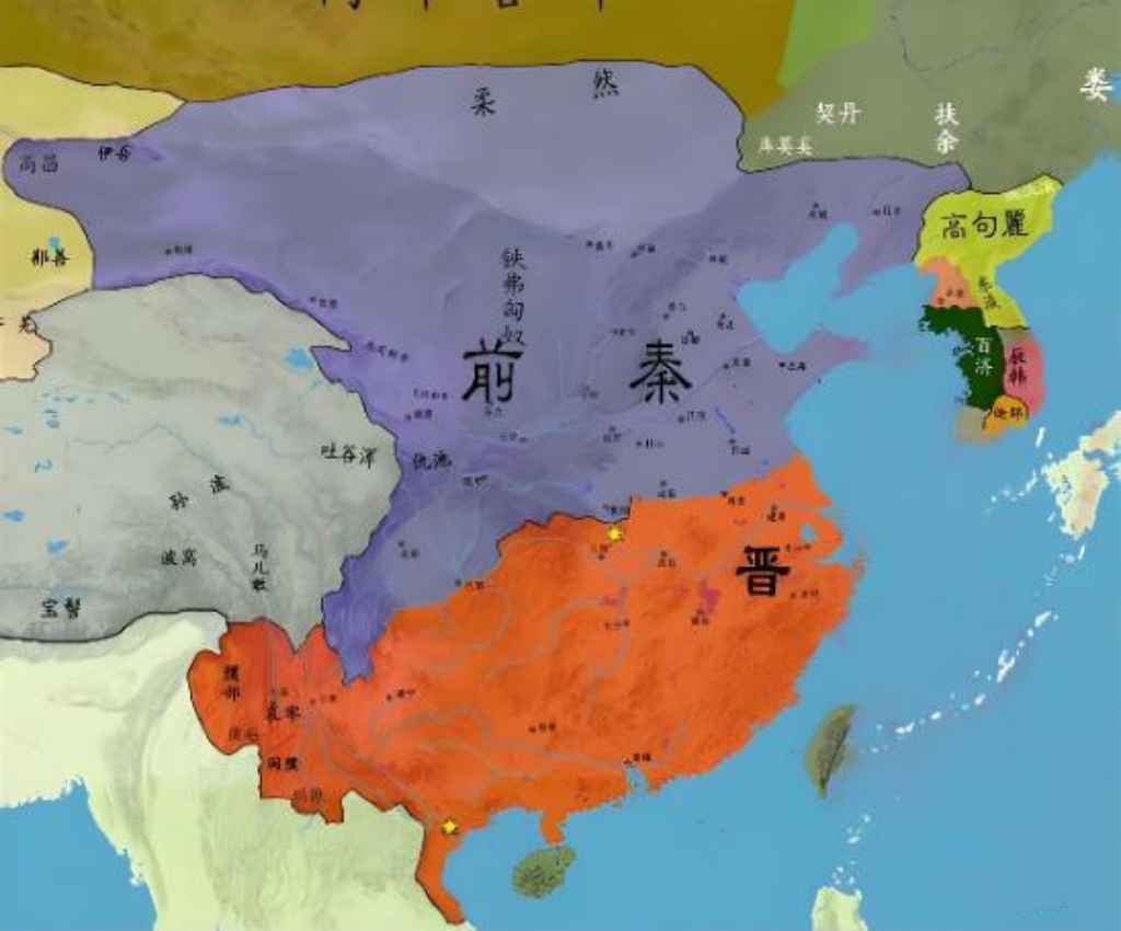 统一北方后,苻坚又意图消灭东晋,实现天下一统。建元十九年(383年),苻坚征调大批军队南征,却在“淝水之战”中惨败,以致国势迅速转衰,胡族首领慕容垂、姚苌、乞伏国仁等纷纷自立,前秦统治崩溃。