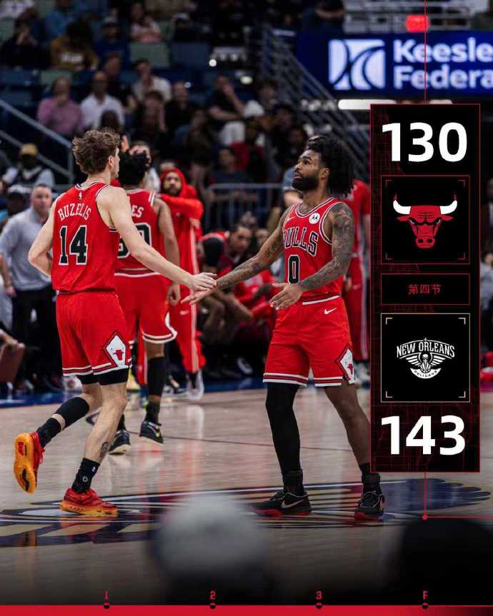 鹈鹕今天在主场以143-130击败公牛,终于终结了9连败,避免遭遇10连败。但鹈鹕目前仍以3胜15负依旧排在西部倒数第一。另外,这也是博雷戈接任临时球队主帅后的首胜。公牛今天输球后,战绩变成9胜8负,和凯尔特人打成平手,暂时排在东部第九。