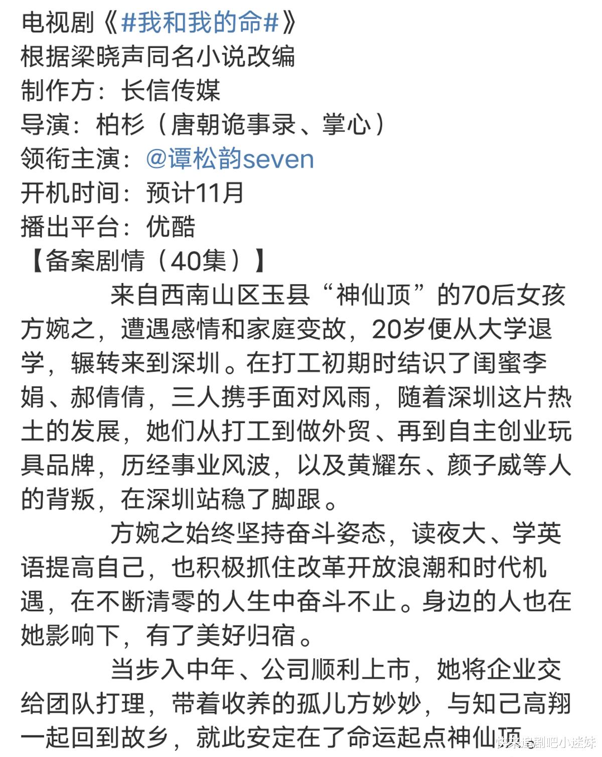 柏导的新剧《我和我的命》,制作方也是长信传媒,网传女主角是90后小花谭松韵。