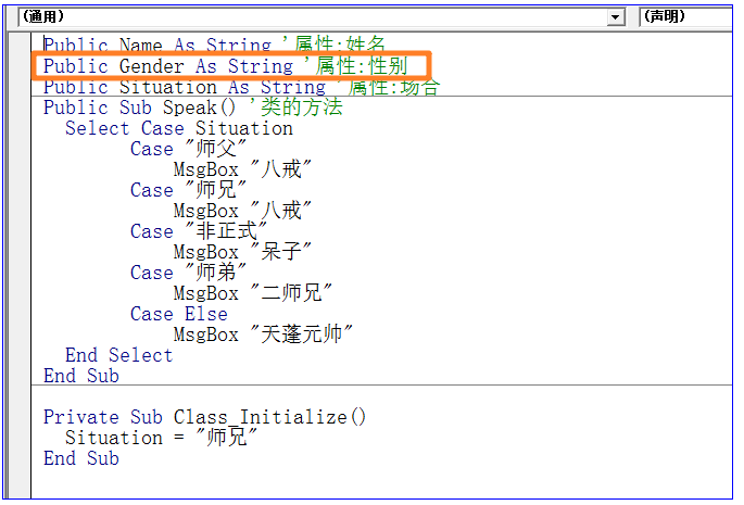 首先,我们将Public Gender As String 改为Private myGender As String。
