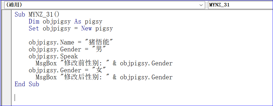 MsgBox "修改后性别:" & objpigsy.Gender