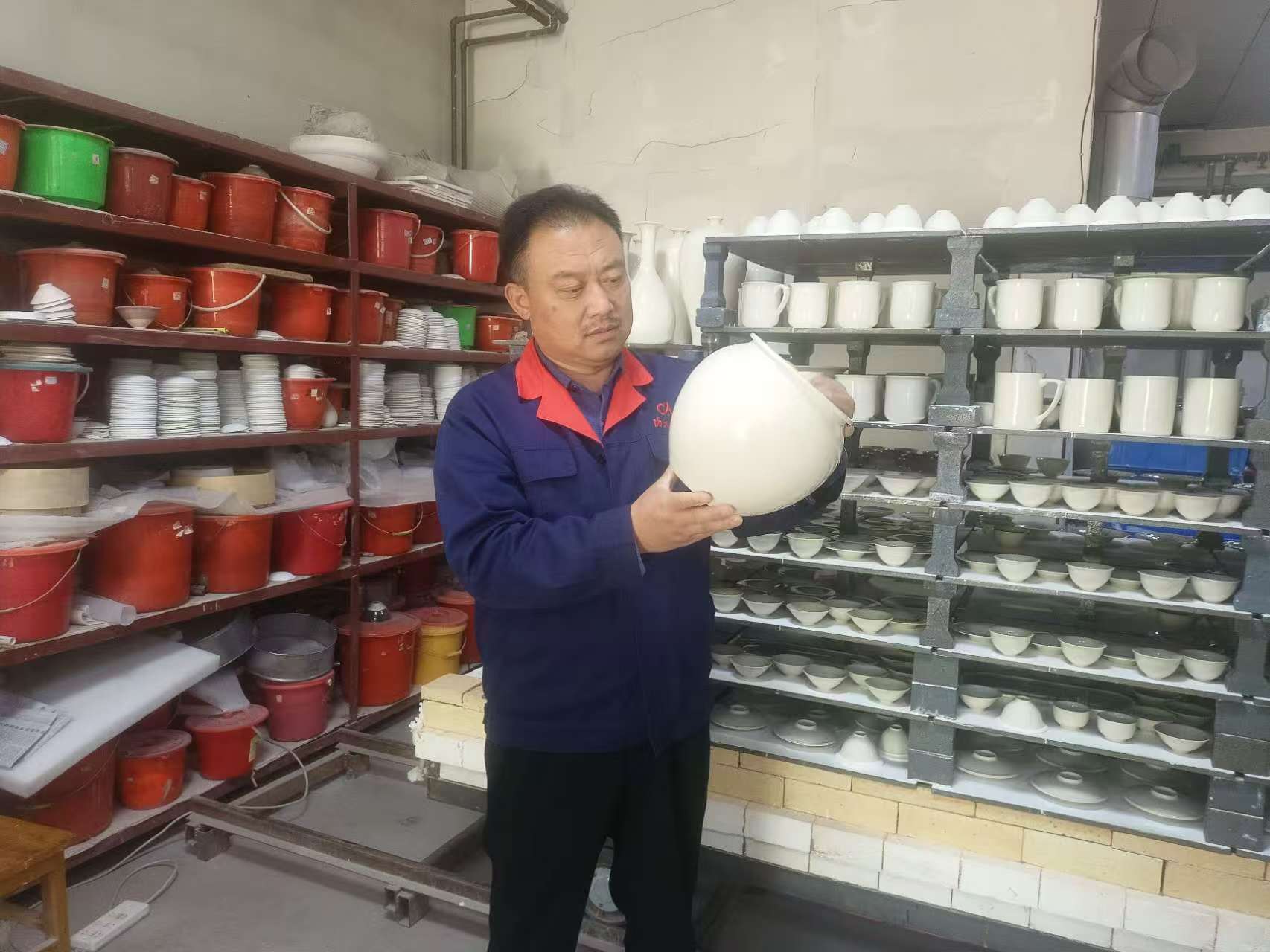 为了解决产能快速提升对烧成带来的压力,王淑昌多次带队去到唐山、潮州、山东等生活用瓷产区考察,请教老专家。王淑昌还亲自装窑、烧制,为每款产品制定独立的辅助窑具和烧制工艺,使产品的变形、气泡、落砂、开裂等缺陷大大降低,成品率提升了1.5倍,为定瓷的产业化发展打下了坚实的工艺基础。