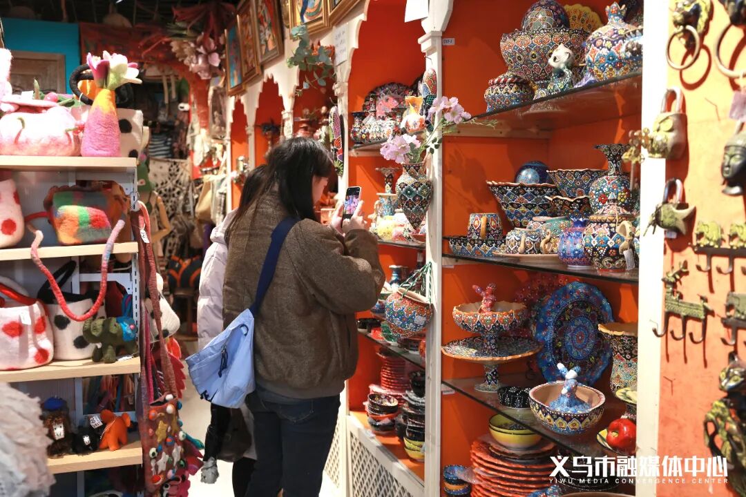 义乌进口商品馆同样洋溢着新年的热闹气息。非洲的工艺品、马来西亚的燕窝、俄罗斯的巧克力……来自全球的特色商品琳琅满目,“买遍世界”的梦想在这里便能轻松实现。