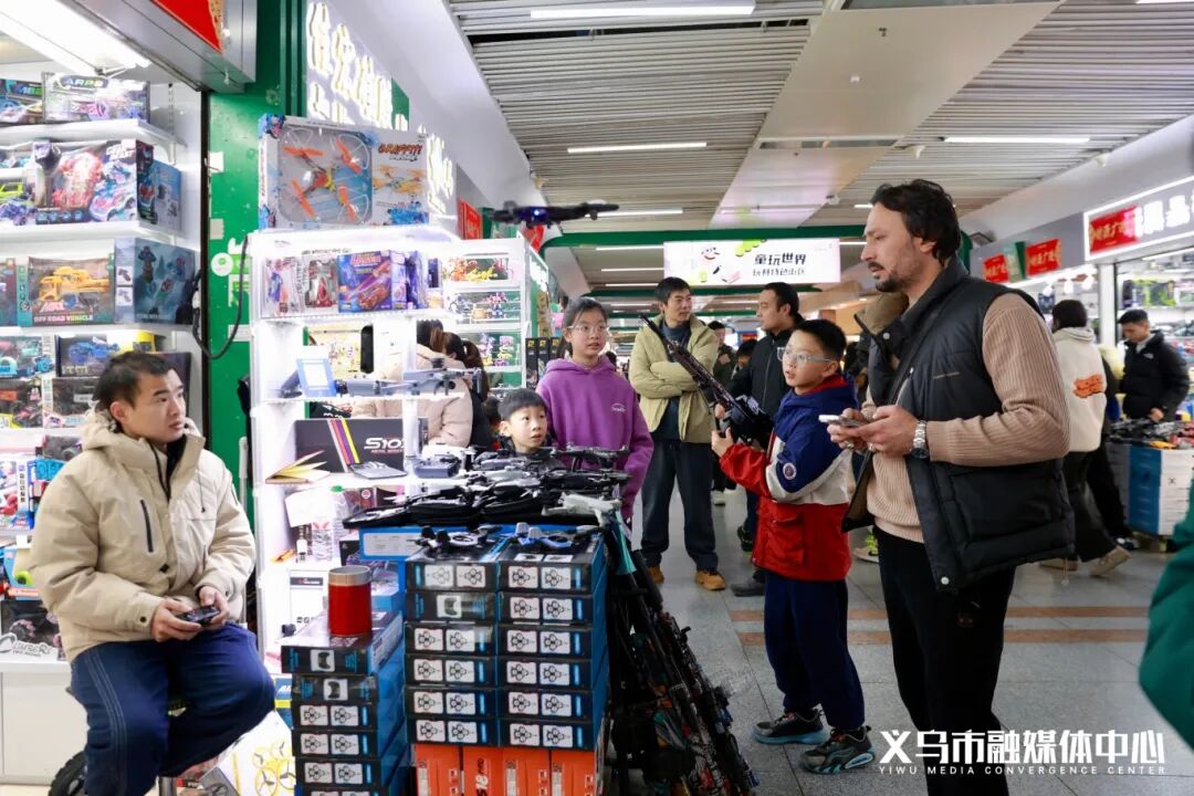 元旦假期期间,小布走进义乌国际商贸城一区,只见通道内人头攒动、摩肩接踵。国内外采购商及游客穿行在各个商铺之间,时而围拢在栩栩如生的解压玩具前驻足把玩,时而又被经营户展示的无人机吸引,大家手里都拎着大大小小的购物袋,空气中弥漫着开年的热闹与期盼。