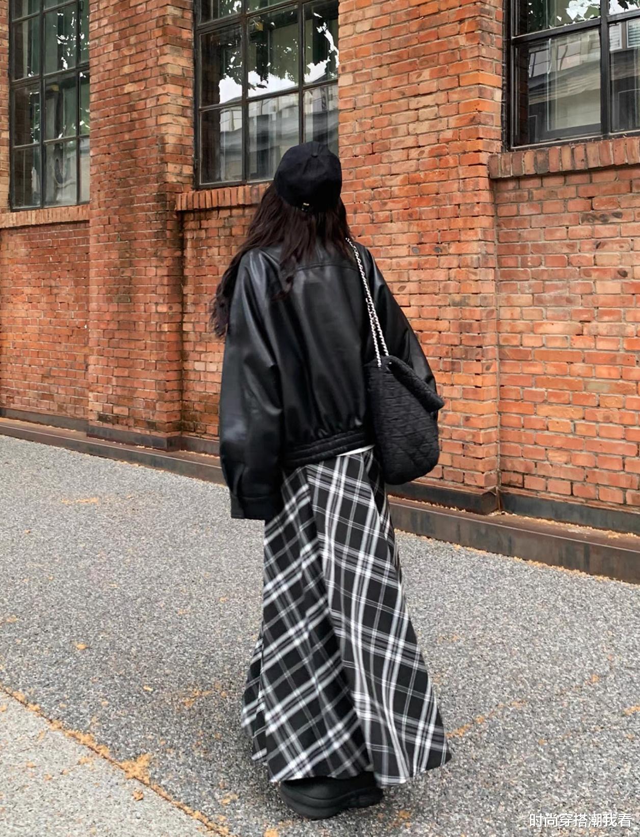 今年特别流行“上短下长”的穿法,比如短款皮衣搭配牛仔阔腿裤,裤子选择拖地的长度,让腿看起来更加修长。短款皮衣的利落感,加上拖地裤的延伸感,整体造型帅气又有型。
