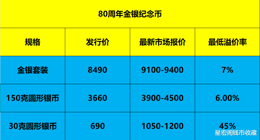 80周年金银纪念币150克圆形银币,目前市场收购报价3900元以上,实际成交价格在4100~4500元左右。30克圆形银币,目前市场收购价格在1100元以上,实际成交价格在1050~1200元左右。从目前的市场情况来看,整体的市场活跃度以及成交量都已经出现明显的上升,毕竟现在很多收藏爱好者也已经中签。