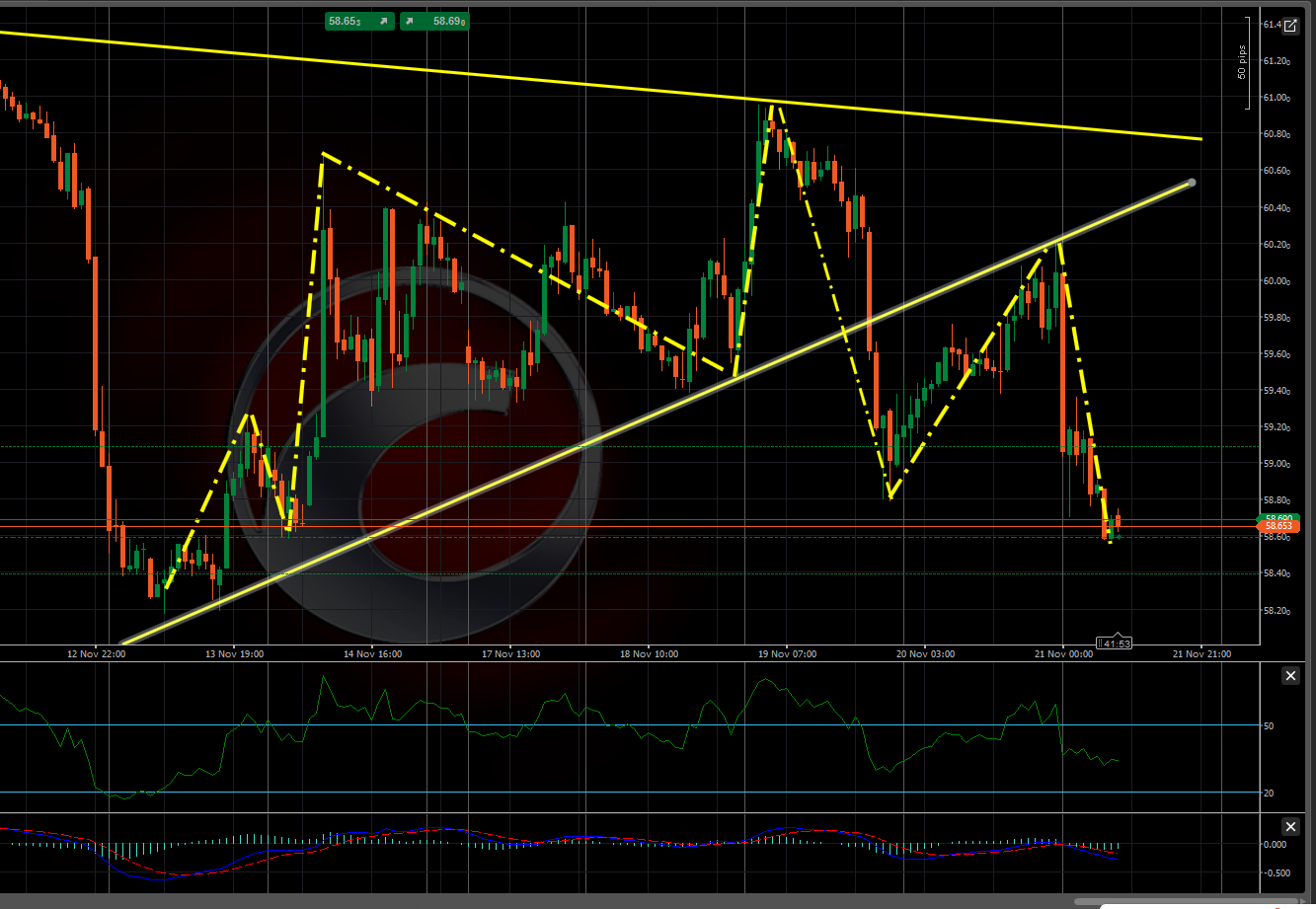 操作上,可考虑在回踩58.1附近时布局多单,止损设于57.9,目标看向58.6-58.7。