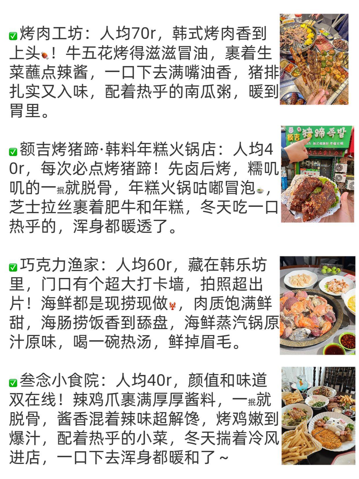 ✅ 额吉烤猪蹄·韩料年糕火锅店:人均40r,每次必点烤猪蹄!先卤后烤,糯叽叽的一抿就脱骨,年糕火锅咕嘟冒泡🍲,芝士拉丝裹着肥牛和年糕,冬天吃一口热乎的,浑身都暖透了。